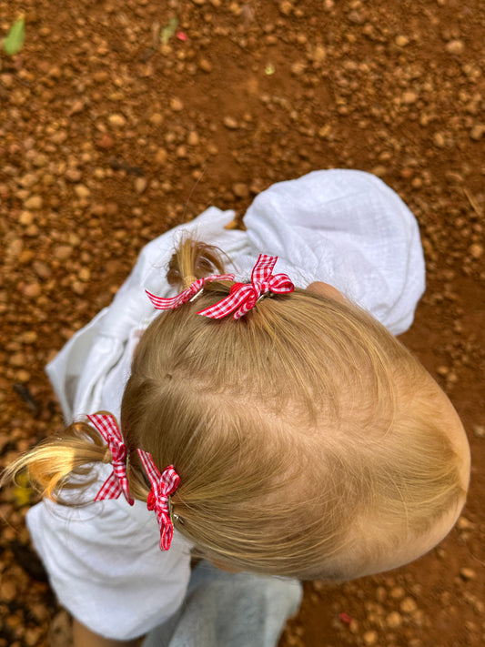from 31 reviewsThe Atty Mini Bow Set in Pink Checkers is absolutely adorable! The quality is lovely, the fabric feels soft and comfortable for little heads, and the pattern is the perfect blend of cute and classic. They stay on well without leaving marks, and the size is just right for toddlers. A sweet accessory that instantly brightens any outfit — definitely a favourite in our collection! 💗