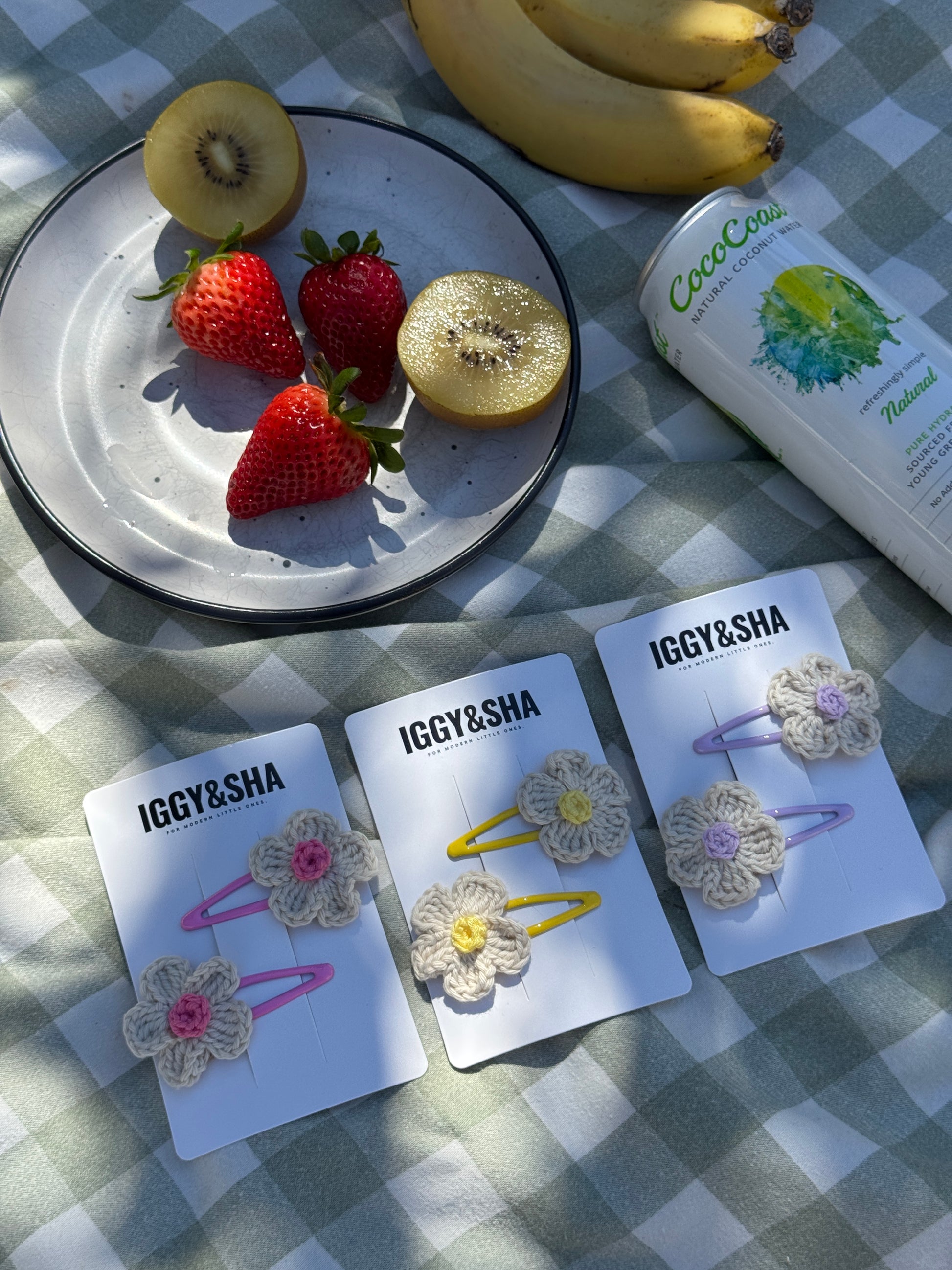 Brighten up your little one’s accessory collection with our Hand Crocheted Florence Snap Clips. Each flower is finished with a coloured crochet centre, adding a playful pop of contrast that makes these clips extra special.